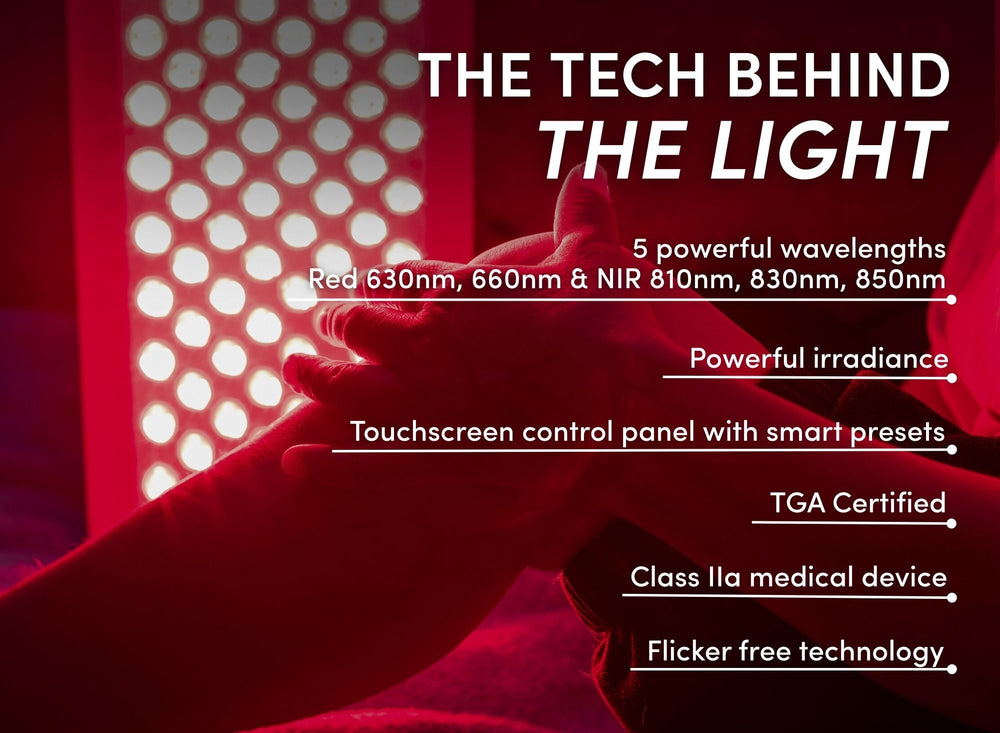 What sets us apart is our commitment to quality, safety, and real results. Our devices are TGA certified and feature clinically studied wavelengths - 630nm, 660nm, 810nm, 830nm, and 850nn, ensuring deep penetration for targeted benefits. With smart presets, touch control and flicker-free technology, they are built for easy, effective at-home use.