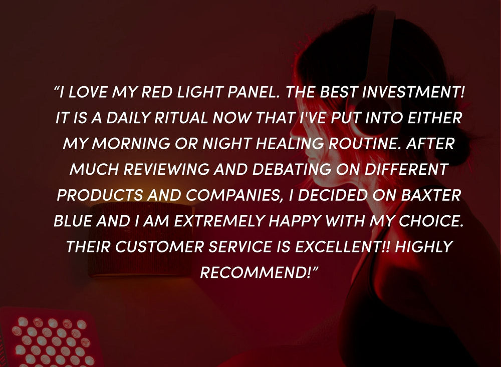 I have been looking to purchase a red light panel for a little while, I wanted to do some research to see if I would really benefit from it. I am so glad I finally invested in one, so many benefits! Absolutely love it and that it can easily be moved around, I am so keen to keep seeing the results from this, thanks Baxter Blue!