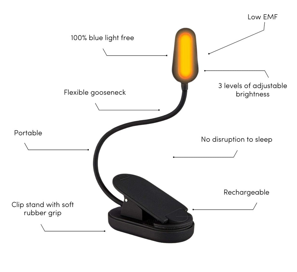 The Evening Glow Amber Book Light is designed to give you a soothing, amber glow that’s 100% free from blue light, protecting your sleep while you read, journal, or wind down at night. Unlike standard lights that can interfere with melatonin production, this light helps your body stay aligned with its natural sleep-wake rhythm.