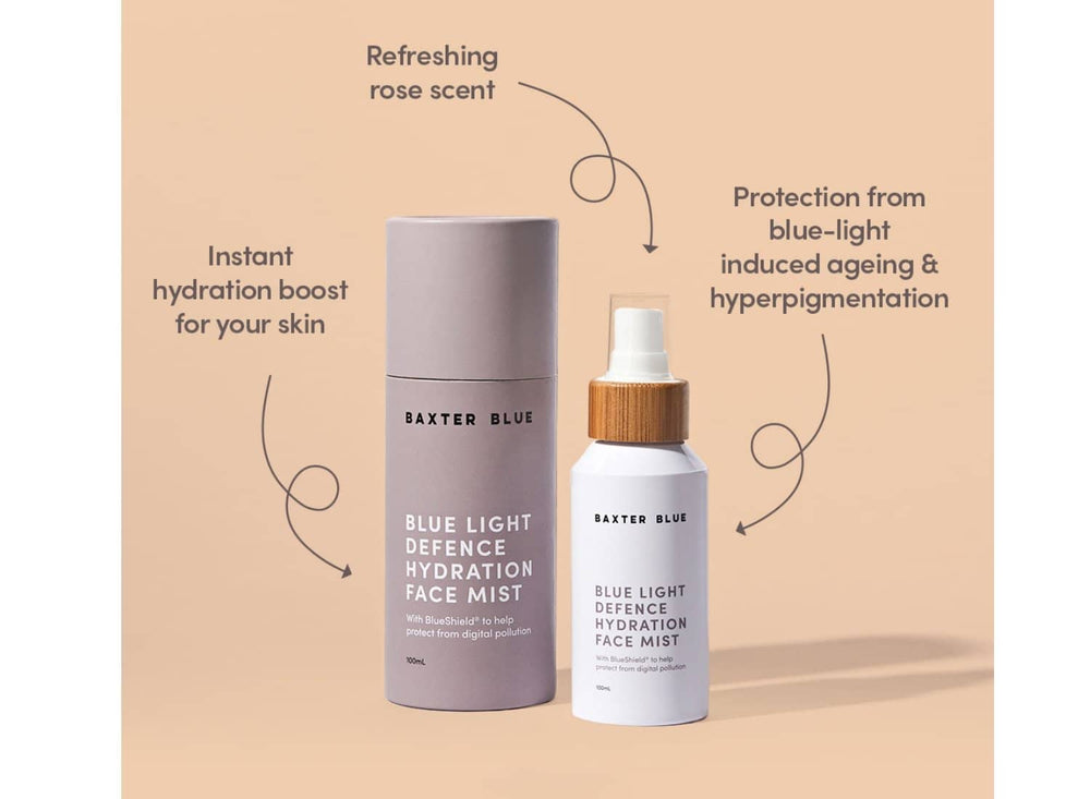 Our Blue Light Defence Hydration Face Mist containing active ingredient BlueShield® will leave you feeling refreshed and hydrated whilst helping to protect your skin from digital pollution and blue light-induced ageing and hyperpigmentation from exposure to artificial blue light.